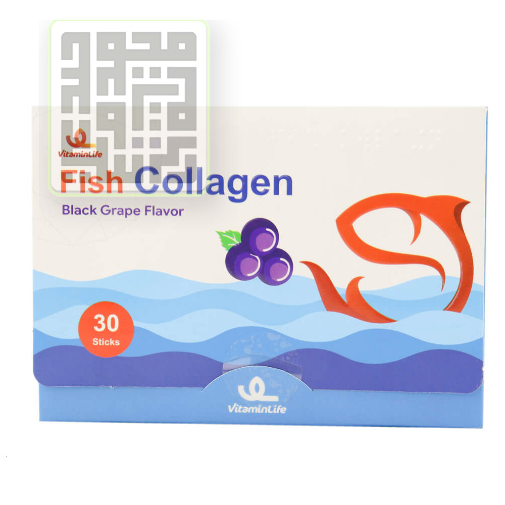 ساشه فیش کلاژن ویتامین لایف 30 عددی دارای طعم انگور سیاه و حاوی کلاژن ماهی و ویتامین ث است. کلاژن ماهی که یکی از مؤثرترین و نزدیک‌ترین نوع کلاژن به کلاژن انسان است تهیه شده است. ساشه فیش کلاژن ویتامین لایف  جهت افزایش و حفظ رطوبت و جوانی پوست تهیه شده است.