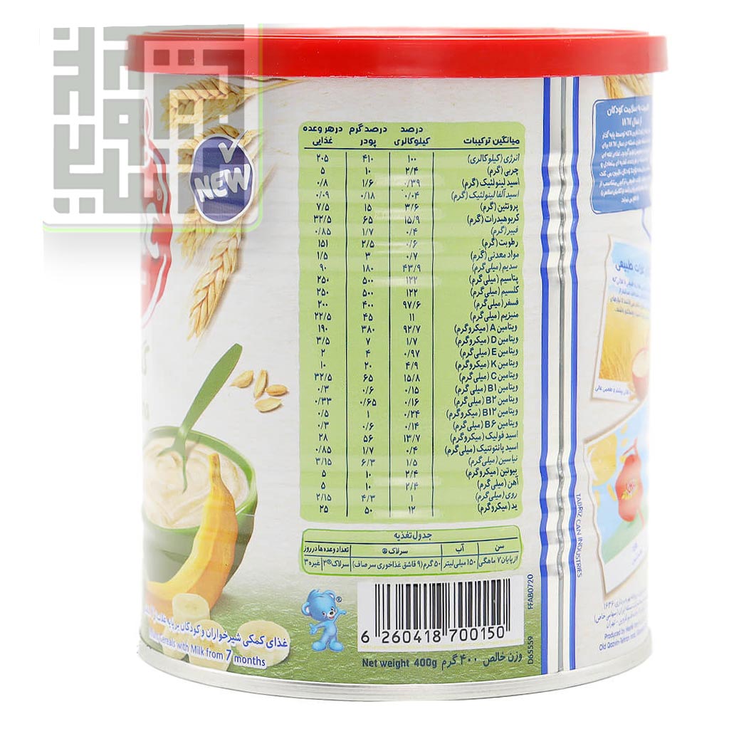 میانگین ارزش غذایی سرلاک گندم و موز نستله مناسب برای کودکان 12 ماه به بالا به شرح زیر است :