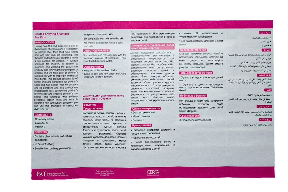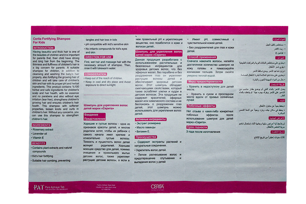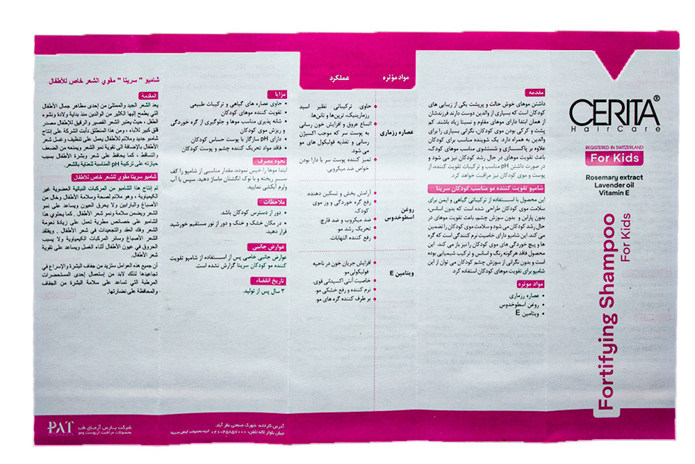 ترکیبات اصلی شامپو تقویت کننده کودکان سریتا