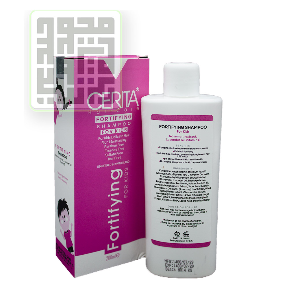 شامپو تقویت کننده کودکان سریتا سلامت موی کودکان را تضمین کرده و دارای خاصیت نرم کنندگی میباشد.و باعث سهولت در باز شدن گرهها و پیچ خوردگیهای موی کودکان را نیز باز می کند.