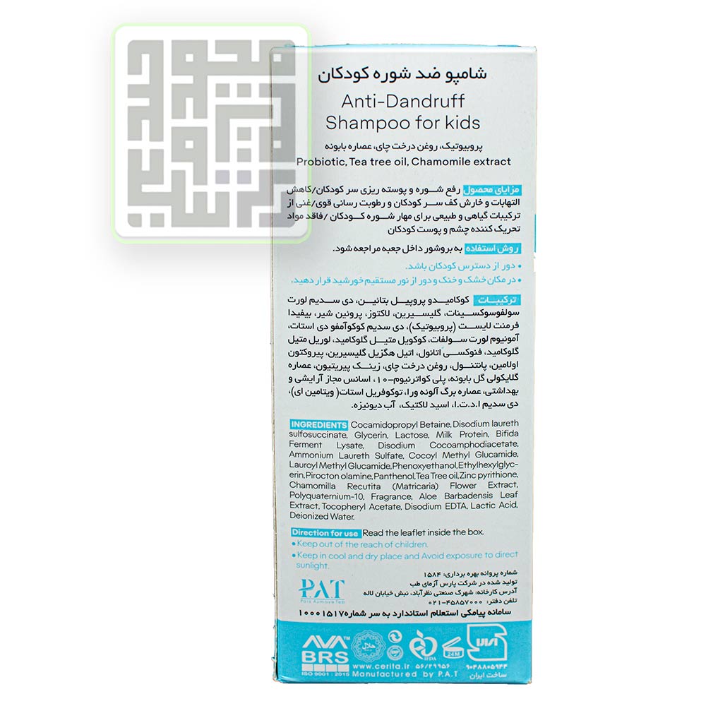 این محصول با استفاده از ترکیبات گیاهی و به کمک تکنولوژی نوین پروبیوتیک، pH مناسب را برای شستشوی کف سر کودکان را مهیا می‌سازد.  هم چنین باعث تنظیم جمعیت میکروارگانیسم‌های کف سر کودکان ( یکی از اصلی‌ترین علل ایجاد شوره و پوسته پوسته شدن سر کودکان ) می‌شود. روغن درخت چای موجود در این شامپو سبب رطوبت‌رسانی و رفع خشکی کف سر کودکان نازنین می‌شود. در کنار عصاره بابونه التهاب و قرمزی کف سر کودکان را به طور کامل رفع می‌کند. در نتیجه با پاکسازی پوست سر و کنترل چربی و همچنین مهار قارچ عامل شوره، علائم شوره در کودک، رفع می‌شود.