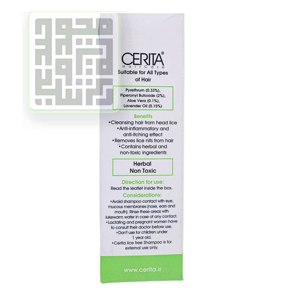 شامپو ضد شپش لایس فری سریتا در ابتدا شپشها را به طور کامل بیحرکت کرده و راه تنفسی آنها را مسدود میکند، در نتیجه شپشها برای تغذیه و تخمگذاری نمیتوانند به سمت ریشه موها حرکت کنند و نابود میشوند. شامپو ضد شپش لایس فری سریتا یک محصول گیاهی و غیرسمی بوده و علاوه بر نابودی شپش موجب نرمشدن موهای شما هم خواهد شد.