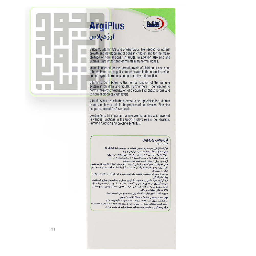 ترکیبات شربت آرژی پلاس یوروویتال (مینرال پلاس ال آرژینین)