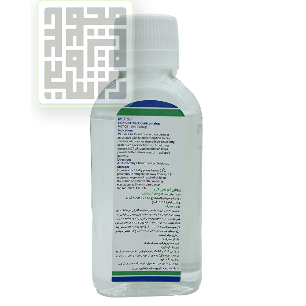 .شربت (روغن) ام سی تی اویل سیمرغ دارو نوعی روغن خوراکی است که با توجه به شرایط توسط پزشک تجویز میشود،