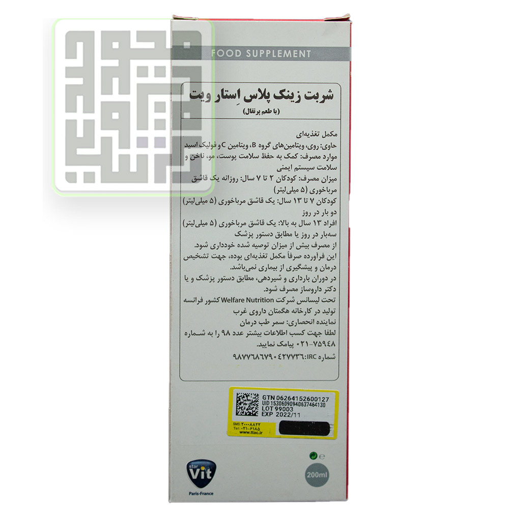 معرفی و بررسی شربت زینک پلاس استار ویت (مکمل روی) 200 میلی لیتر
