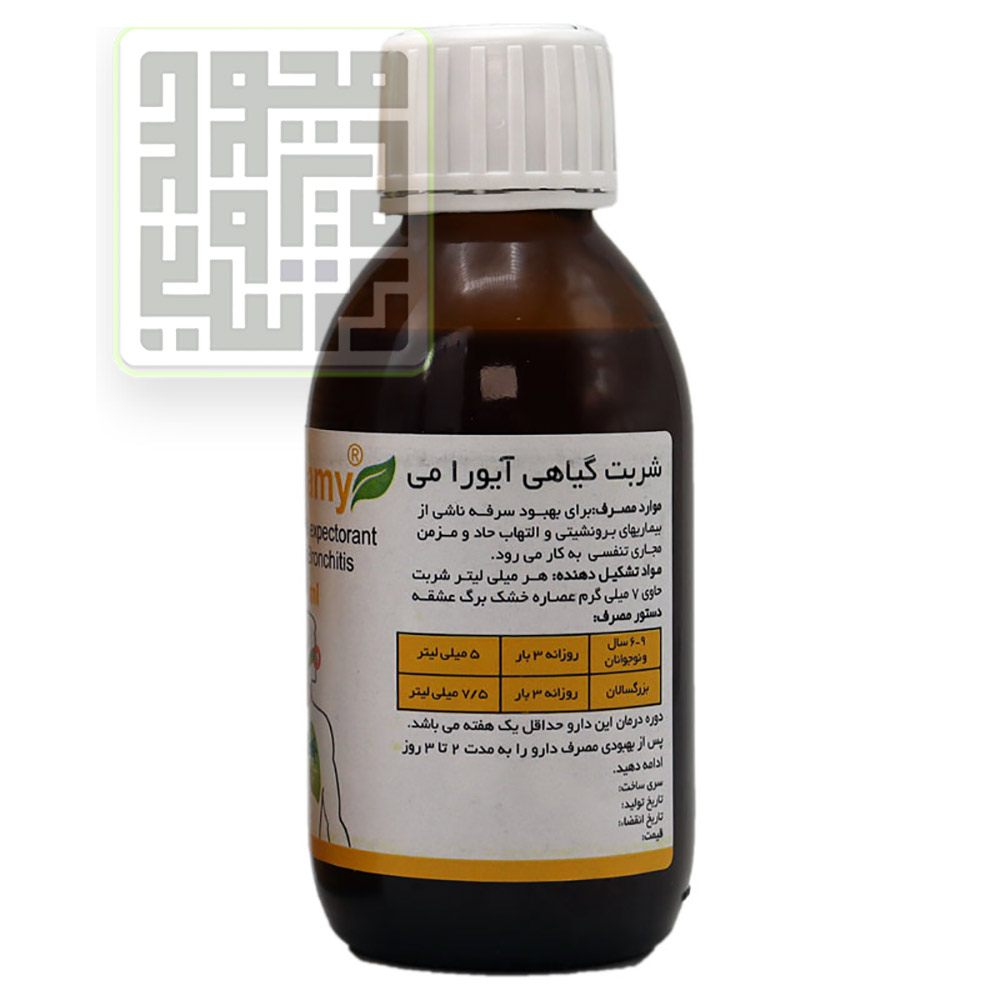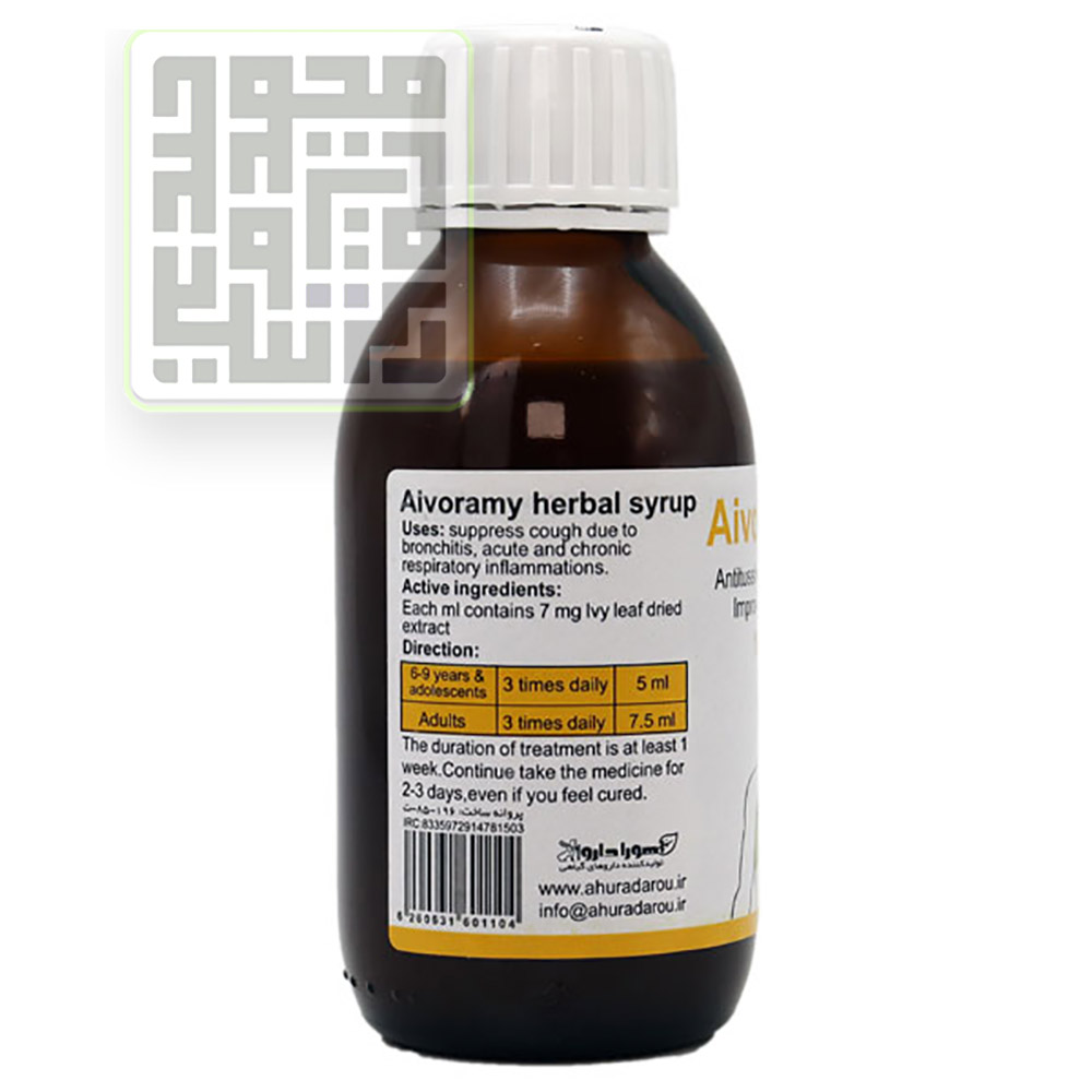 شربت سرفه (سینه) آیورامی یک شربت کاملا گیاهی با اثر بخشی بسیار بالا و همچنین طعم مطلوبی حاوی عصاره خشک گیاه عشقه یا پیچک با حجم 120 میلیلیتر در شرکت داروسازی اهورا ساخته میشوذ؛همینطور در ساخت این گیاه ساپونین استفاده شده که با خواص ضدباکتریایی بالایی است.