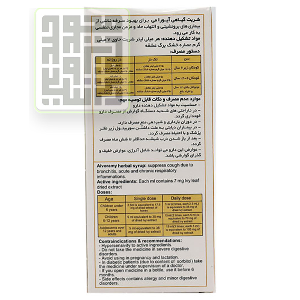 میزان مصرف پیشنهادی داروخانه داروچی برای شربت سرفه (سینه) آیورامی