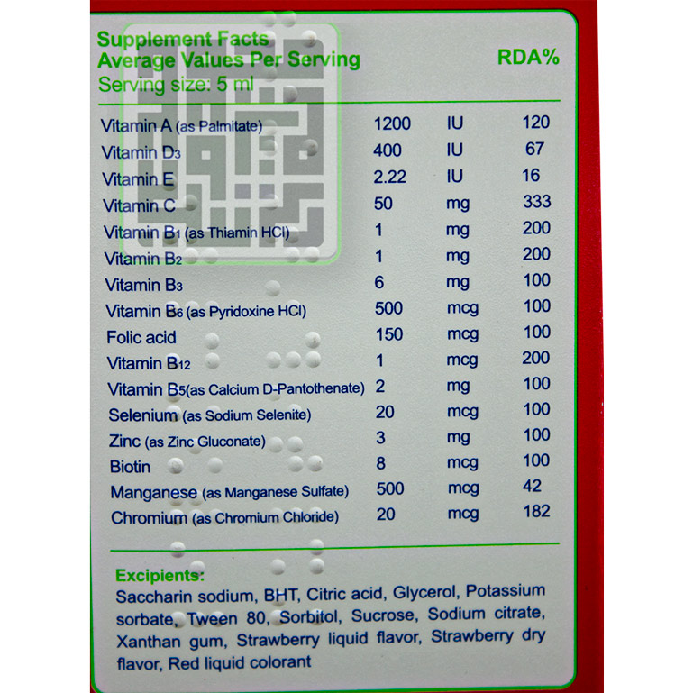 - برای کودکان 1 تا 8 سال 5 میلیلیتر روزانه (یک قاشق مرباخوری یکبار در روز)