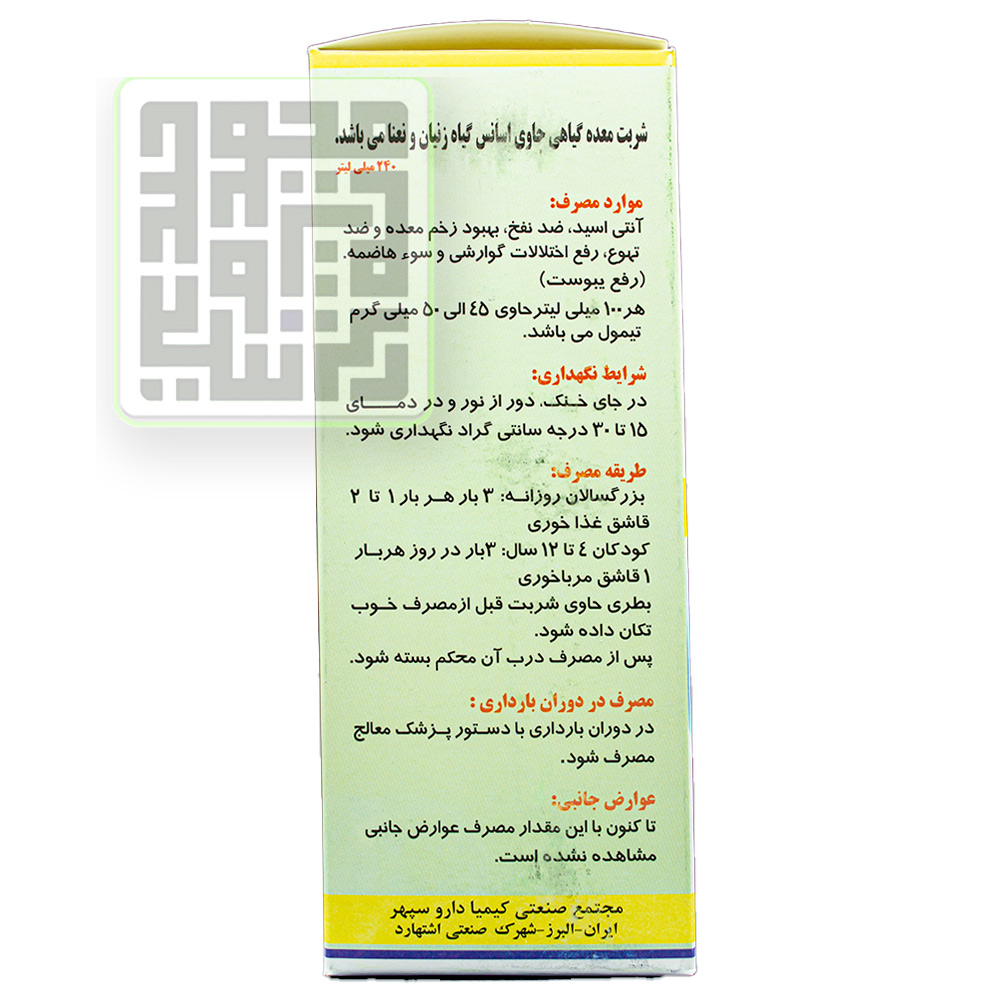 ترکیبات شربت معده کی دی اس زنیان