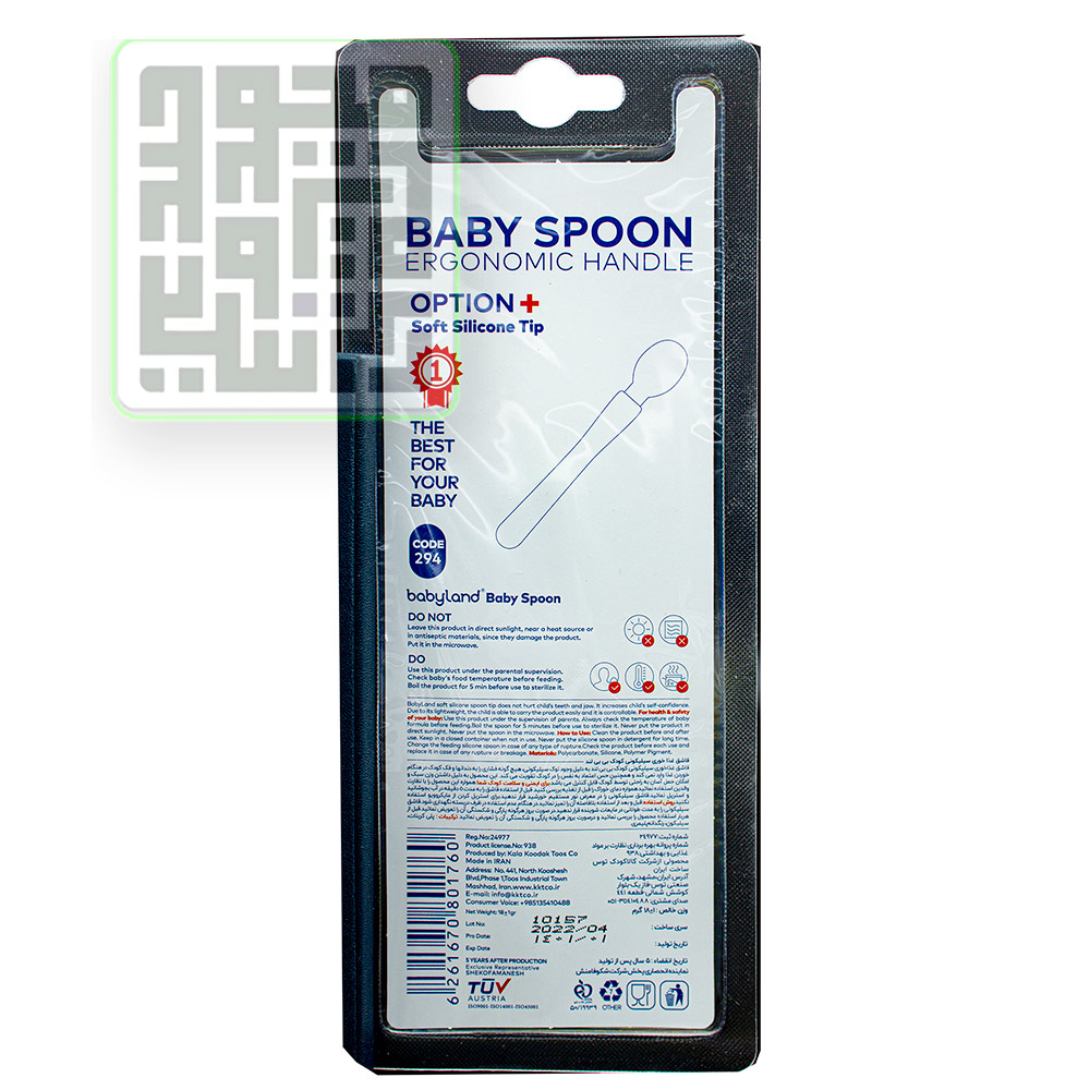 این قاشق بچه بی بی لند کد ۲۹۴ دارای سری سیلیکونی و دارای بدنه پلاستیکی و بدنه این محصول ارگونومیک بوده و باعث راحت قرارگرفتن در دست میشود. یکی از مزیت مهم این محصول که آن را با سایر محصول متمایز کرده حرارتی بودن آن است بهطوریکه اگر غذا داغ باشد، سری قاشق تغییر رنگ داده و با کمرنگشدن والدین، داغ بودن غذا را متوجه می شوند.