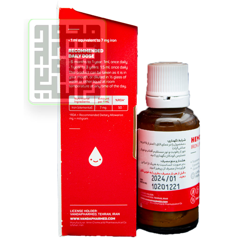 ترکیبات قطره آهن کودک لیپوزومال هموزوم واندا فارمد