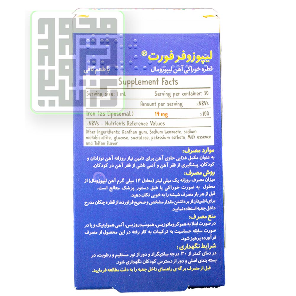 ترکیبات قطره آهن لیپوزوفر فورت بنیان سلامت