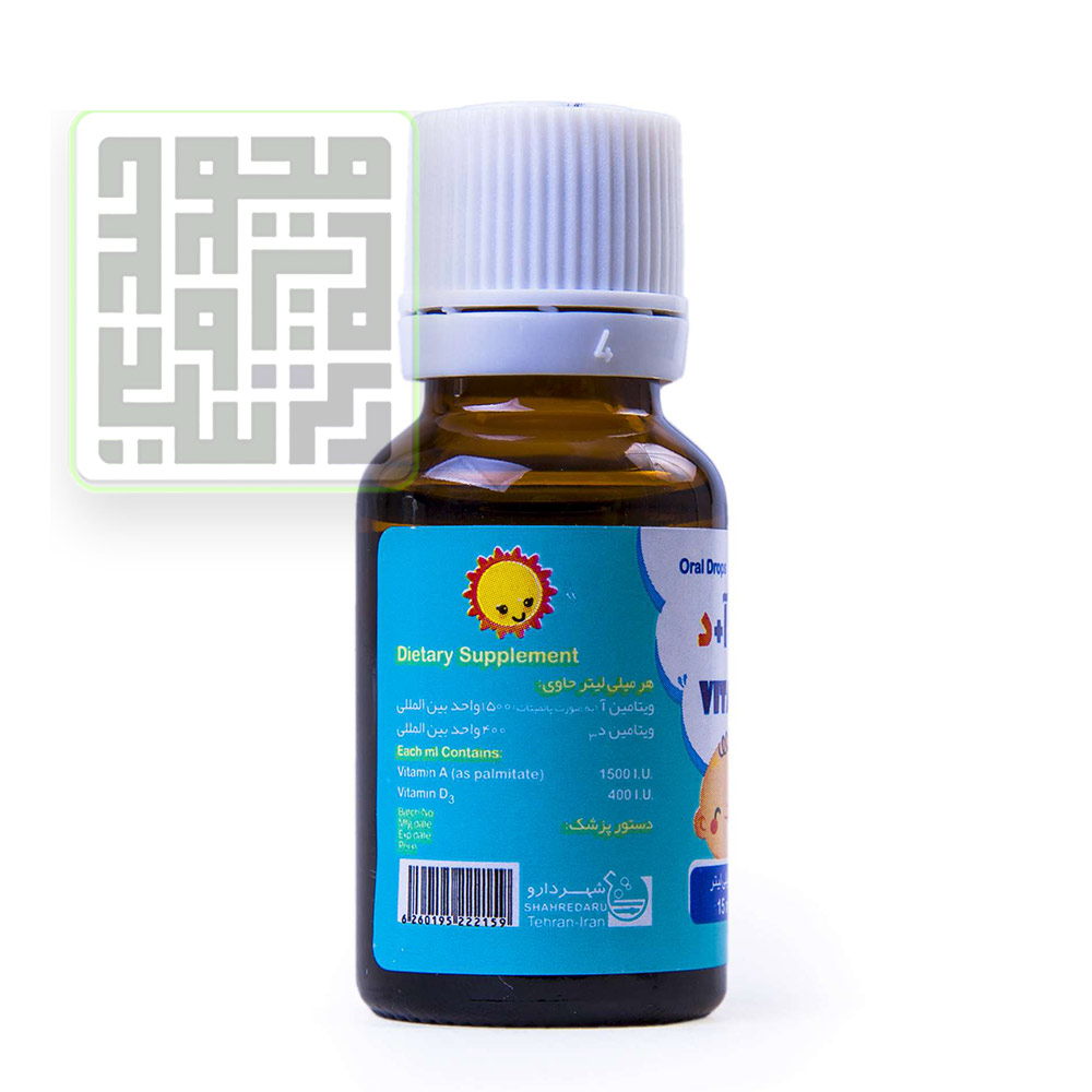 قطره آ+د شهر دارو 15 میلیلیتری یک فرآورده مکملی برای نوزادان و کودکان است، شامل مواد معدنی، ویتامین آ و ویتامین د است. این ویتامینها بر سلامت نوزادان بسیار تأثیرگذار است. این قطره مخصوص کودکان است و کمبود مولتیویتامین در کودکان باعث ایجاد اختلال در رشد، کاهش مقاومت بدن و اختلال در خونسازی میشود.