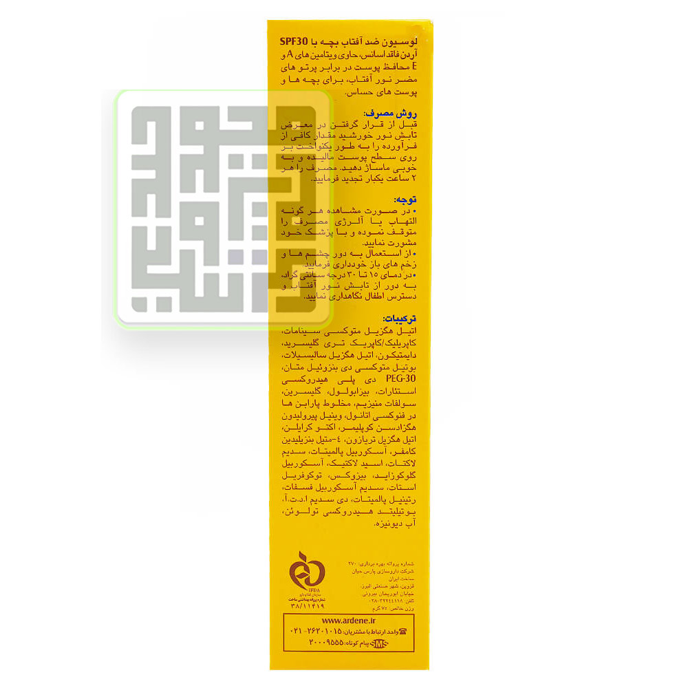 معرفی و بررسی لوسیون ضد آفتاب کودکان SPF۳0 آردن ۷۵ گرمی