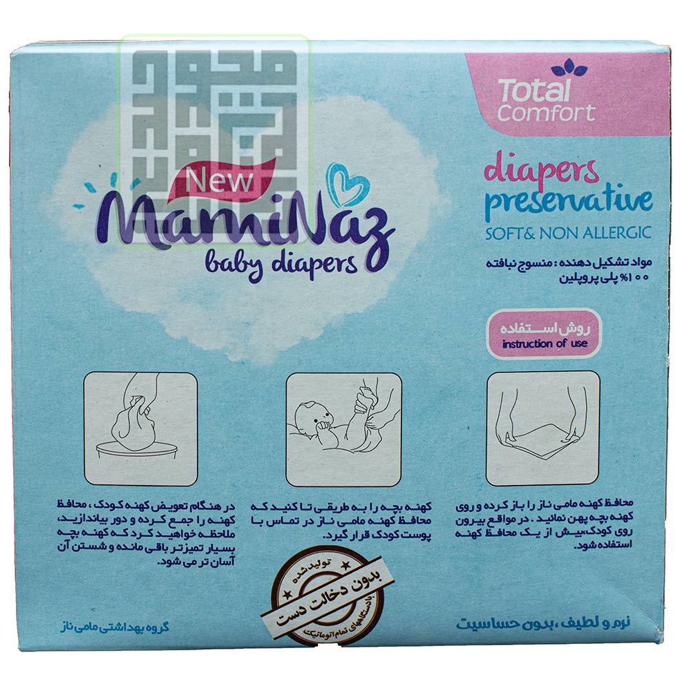 محافظ کهنه مامی ناز یک محصول کاربردی برای مادرانی است که تمایل دارند کودک دلبند خود را کهنه کنند. در واقع این محصول برای استفاده بهداشتی تر از کهنه است. جنس این محافظ کهنه پلاستیک پلی پروپیلن بسیار لطیف است.