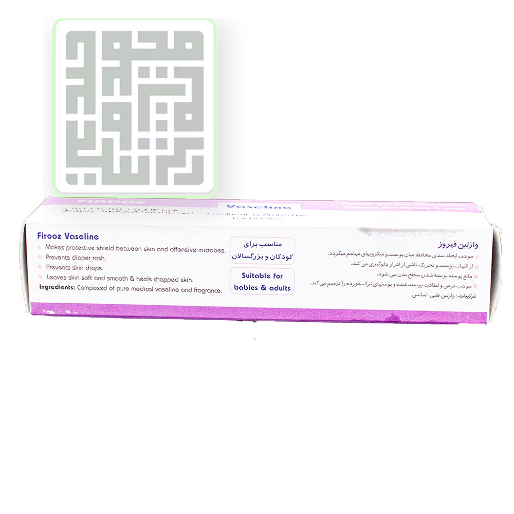 وازلین تیوبی فیروز ، مجموعه ای از ترکیبات محافظ برای پوست را به همراه عطر ملایم و مطبوع خود در کنار هم جمع کرده است. این محصول عاری از آب بوده و محصولی با قدرت پوشانندگی و محافظت بسیار بالا می‌باشد.