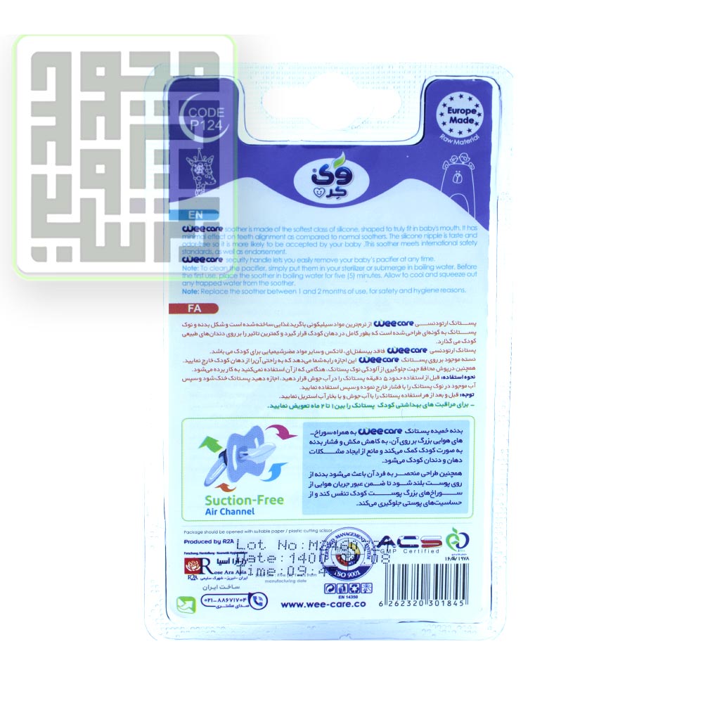پستانک ارتودنسی سیلیکونی وی کر P124 زیر 6 ماهگی یک فرآورده بهداشتی و مراقبتی مادر کودک و جزو لوازم شخصی برای نوزادان از بدو تولد تا 6 ماهگی طراحی و تهیه شده است.