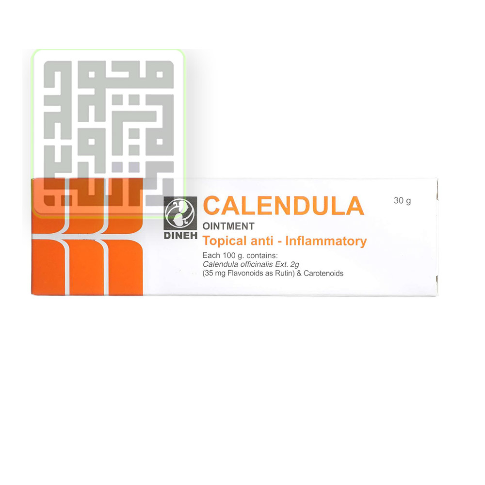 پماد کالاندولا دینه علاوه بر خاصیت ضد التهاب جلدی، با تسریع روند بازسازی سلول‌های جدید، موجب ترمیم و تسکین پوست‌های حساس و ملتهب می‌شود. این عصاره گردش خون را بهبود داده و پوست را التیام می‌بخشد.