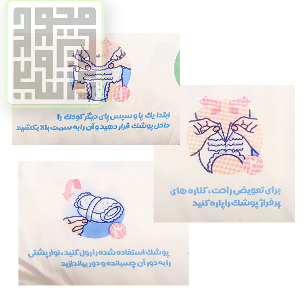 این محصول دارای لایهای بسیار نرم در قسمت رویی خود است که کمترین میزان آسیب و آزار را برای نوزاد یا کودک به وجود میآورد. از ویژگی های این مدل آسودگی در استفاده. همچنین تعویض سریعتر اون بدون نشت آلودگیه.