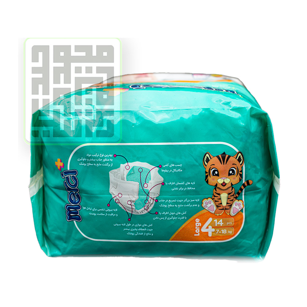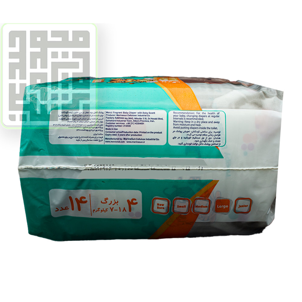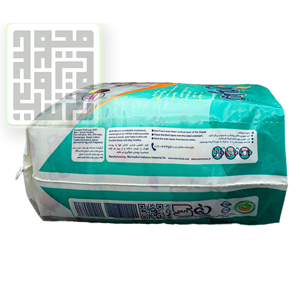 پوشک مرسی سایز 4 نرمال یک محصول داخلی بوده که تولید صنایع سلولوزی ماریناسان میباشد.