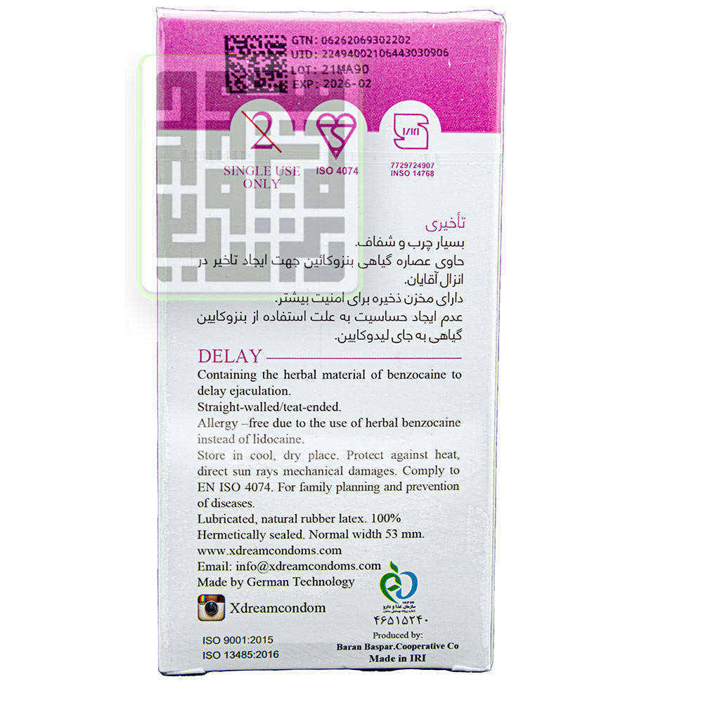 ویژگیهای کاندوم ایکس دریم مدل DELAY تاخیری بسته 12 تایی
