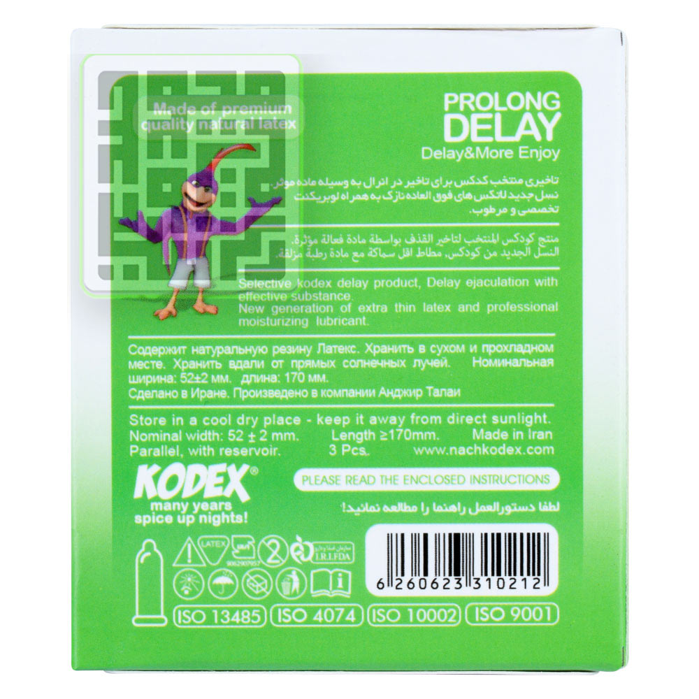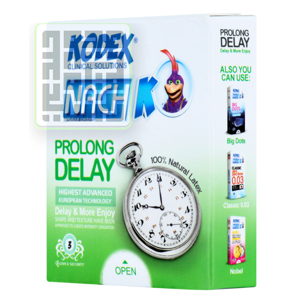 کاندوم کدکس مدل Prolong Delay بسته 3 عددی یکی دیگر از محصولات برند ناچ کدکس یا کدکس است. که جزو محصولات ترکیبی با چندین خواص می‌شود. که لذت رابطه جنسی را چندین برابر می‌کند.