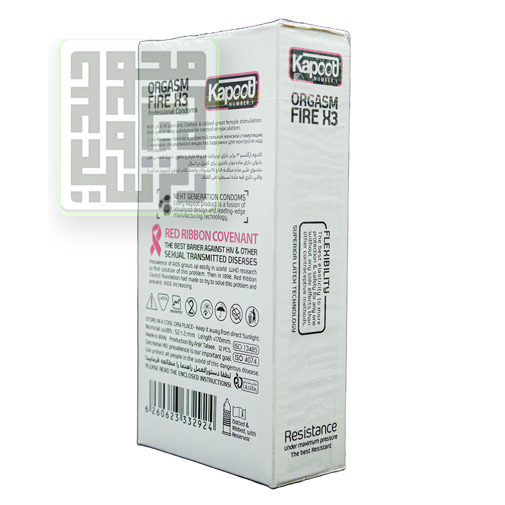 کاندوم کاپوت ORGASM FIRE X3 ارگاسم 3 برابر یکی از کاندوم‌های برند کاپوت است. کاندوم کاپوت 12 تایی ارگاسم 3 برابری جزو محصولات ترکیبی برند کاپوت محسوب می‌باشد که دارای کیفیت بسیار بالایی است. همچنین به دلیل داشتن خاصیت ترکیبی ، دارای چندین خواص مختلف بوده که باعث افزایش لذت در حین رابطه می‌شود.