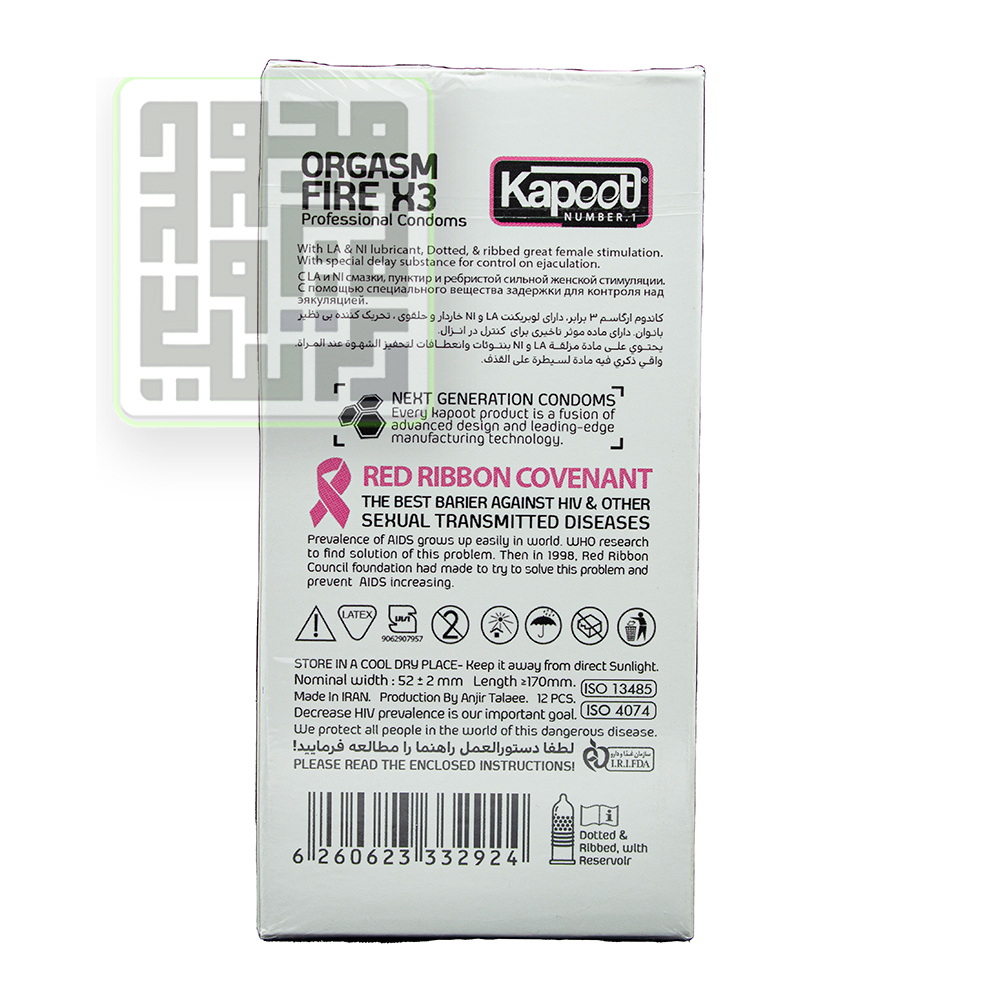 ویژگی‌های کاندوم کاپوت ORGASM FIRE X3 12 تایی