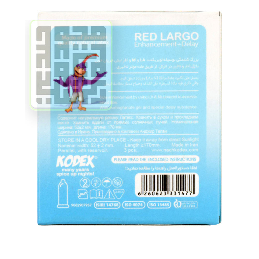 کاندوم کدکس Red largo بزرگ کننده بسته 3 تایی یکی دیگر از محصولات برند ناچ کدکس یا کدکس است.