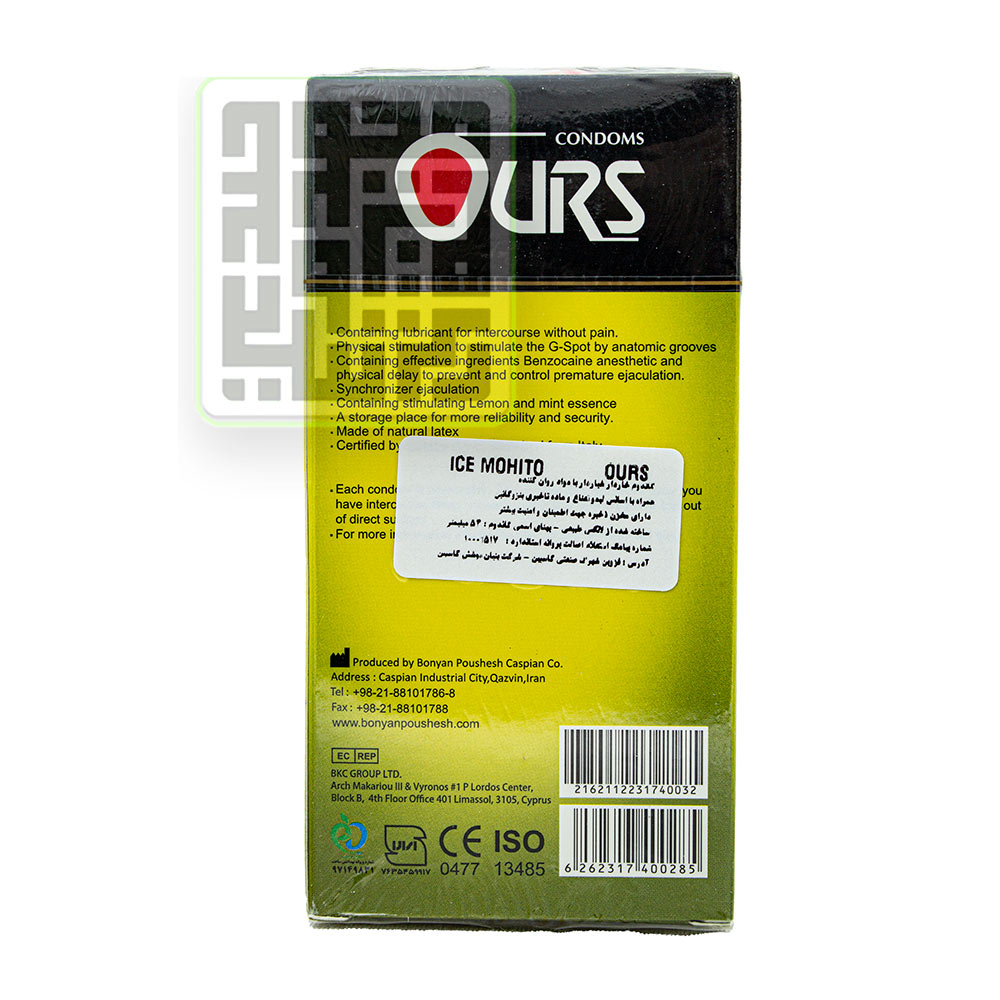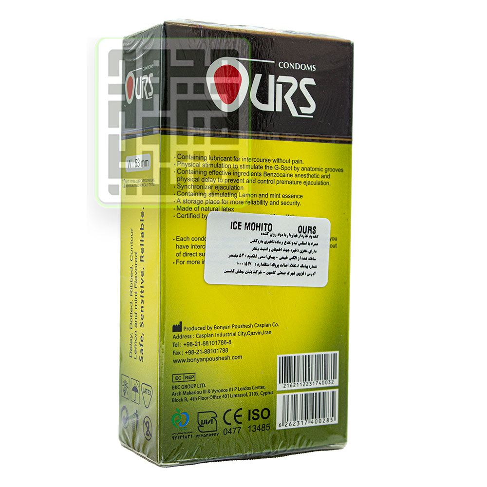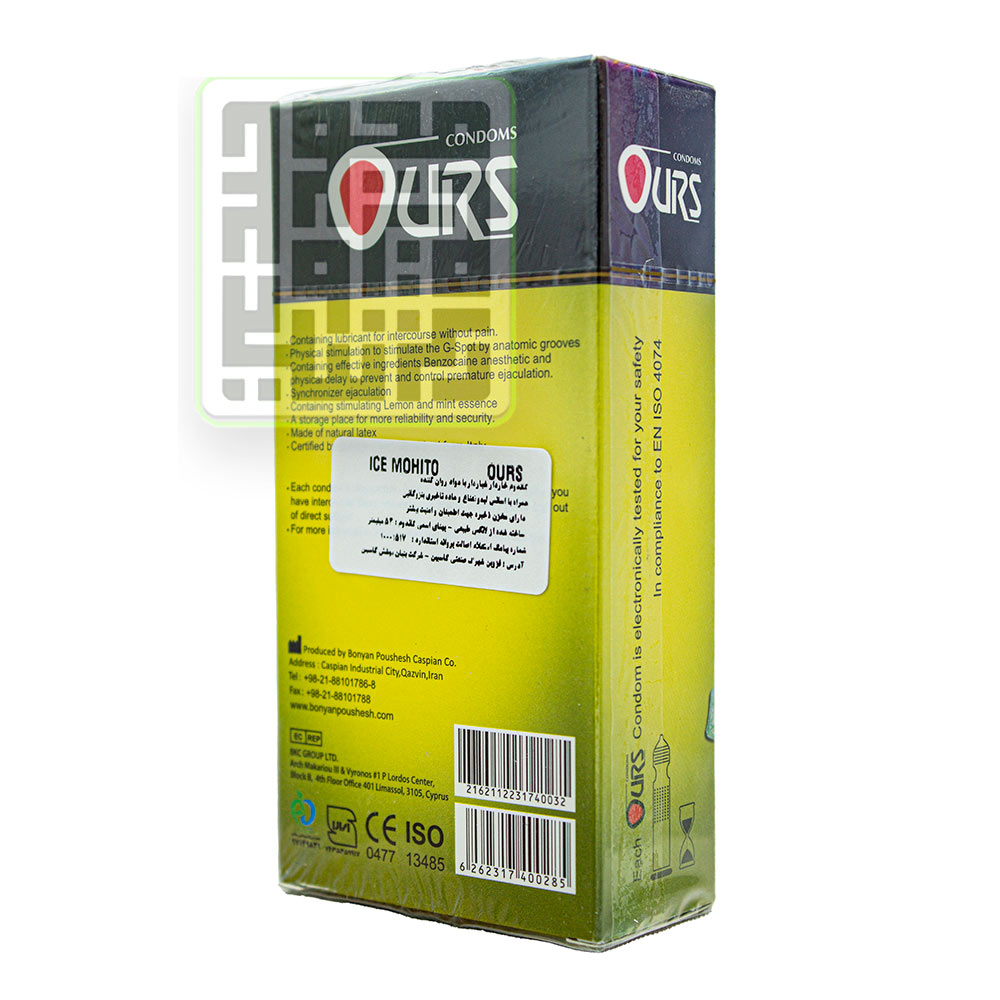 کاندوم اورز 12 تایی مدل ICE MOHITO از محصولات تولیدی توسط برند داخلی اورس (اورز) است. که به دلیل وجود چندین خاصیت در یک محصول توانسته توجه افراد زیادی را به خود جلب کند.