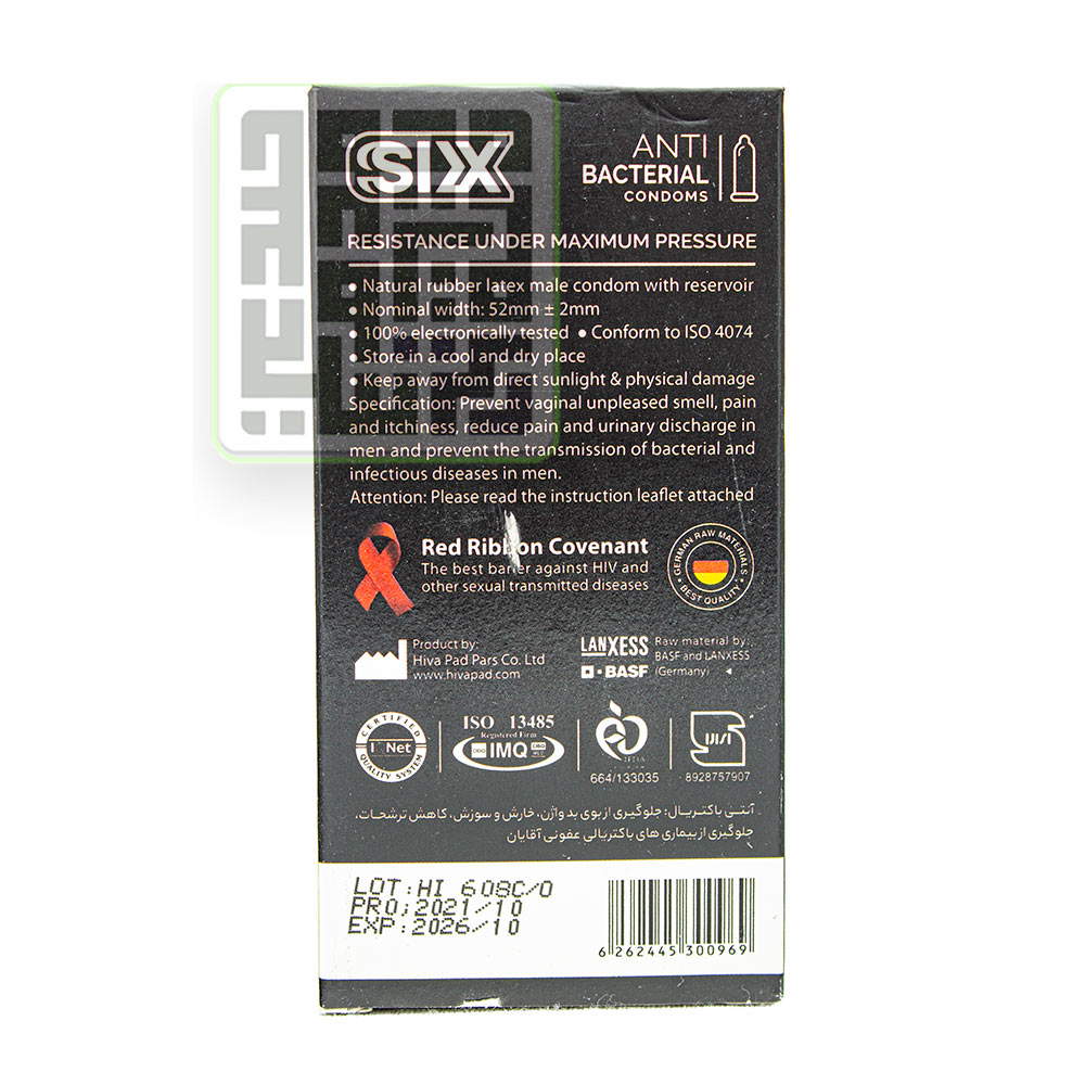 کاندوم سیکس مدل ANTI BACTERIAL یکی از کاندوم‌های تولیدی توسط برند داخلی سیکس می‌باشد، که دارای چندیدن خاصیت منحصر به فرد است. محوببیت اصلی این محصول در ویژگی‌های آن است که زوجین را به خود جذب کرده.