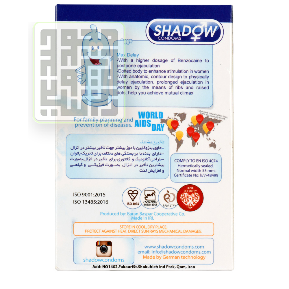 ویژگی‌های کاندوم شادو مدل Max Delay فوق تاخیری بسته 12 تایی