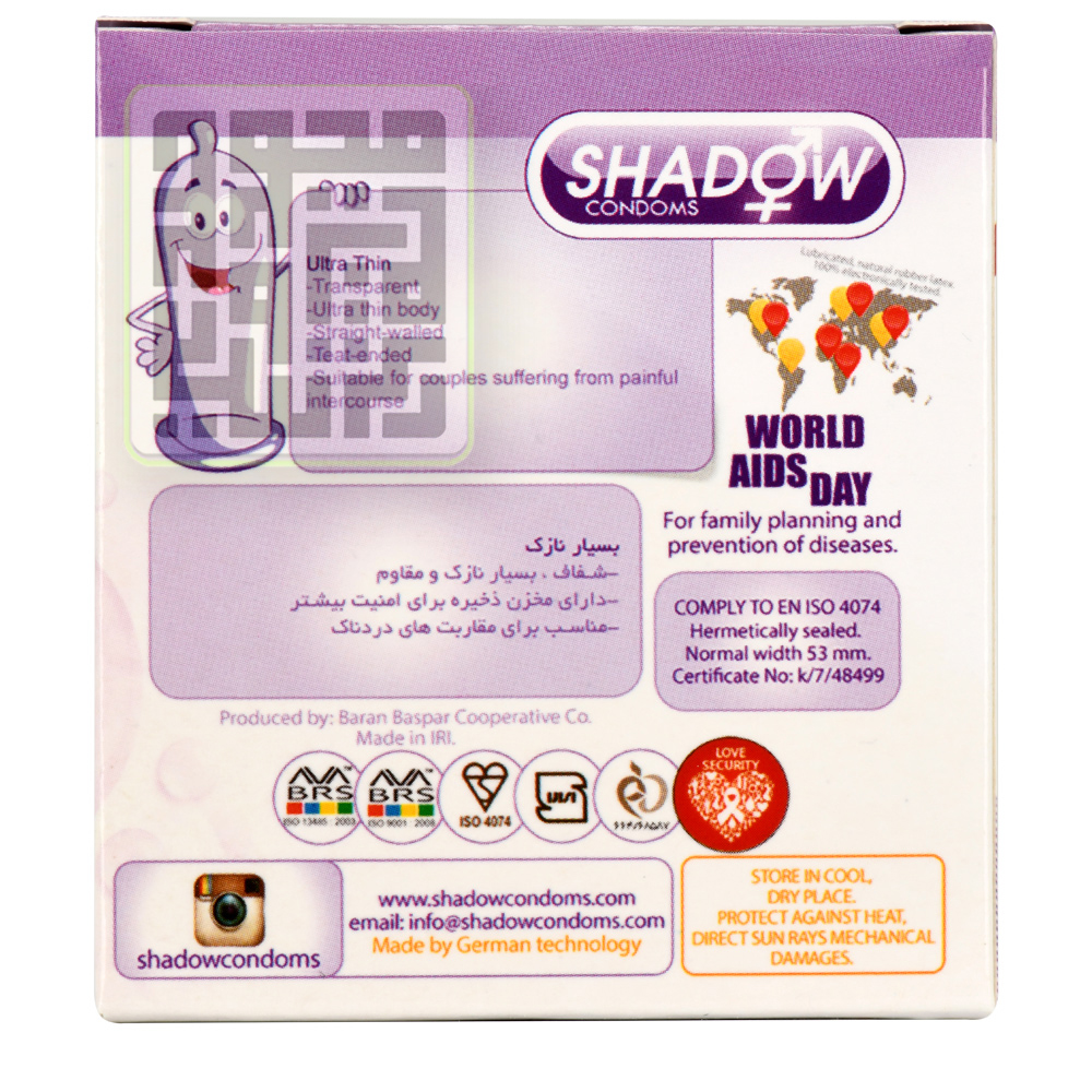 ویژگی‌های کاندوم شادو مدل ULTRA THIN فوق نازک بسته 3 تایی