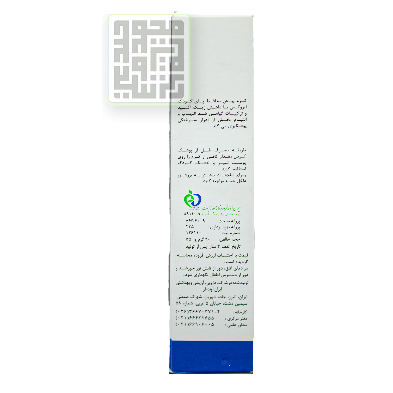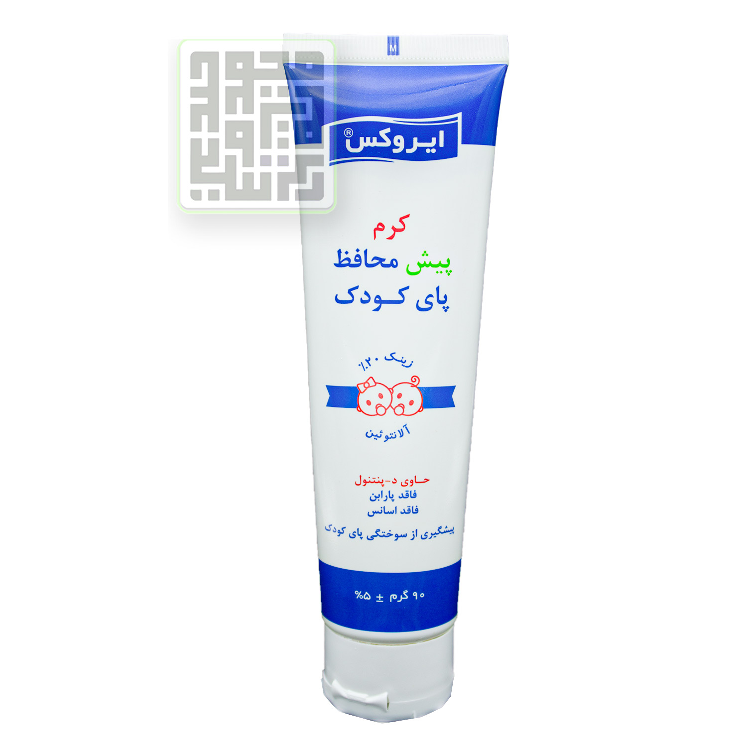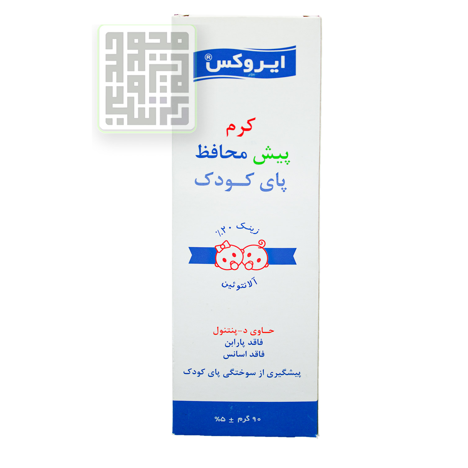 کرم پیش محافظ ایروکس 90 گرمی حاوی روی بوده که با ایجاد لایه نازکی بر روی پوست بیحفاظ کودک از تحریکات پوستی جلوگیری میکند. سیکلوپنتاسیلوکسان موجود در فرمول کرم سبب آبگریزی زینک اکساید میشود. این ویژگی خاصیت محافظت آنرا چند برابر افزایش میدهد.
