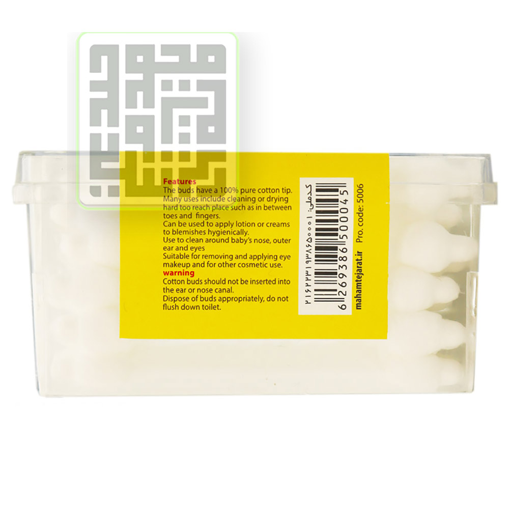 از نظر پزشکی تمیزکردن حفره داخلی گوش نیاز نیست؛ اما تمیزکردن ناحیه خارجی گوش با این محصول بسیار مناسب و ضروری است. این محصول از پنبه صددرصد خالص هیدروفیل شده باقدرت جذب بالا و کاملاً نرم تهیه شده است. این محصول برای راحتی استفاده دارای دسته پلاستیکی و قابل انعطاف و پنبه بهوسیله چسب مخصوص بر سطح لاستیک چسبیده است.