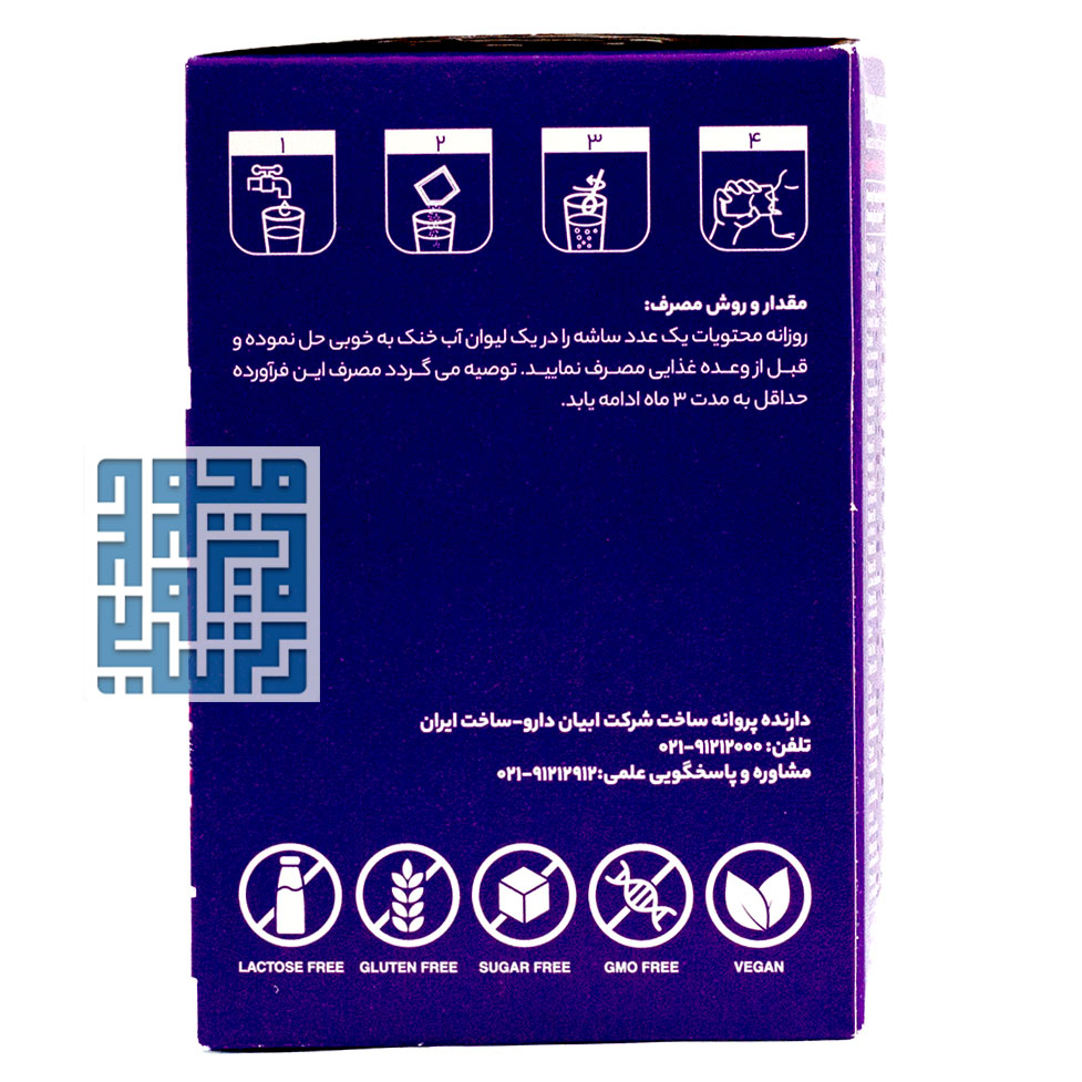 این مکمل زنان بهصورت ساشههای خوراکی با طعم دلپذیر لیمو عرضه میشود. هر بسته شامل ۱۵ ساشه پودری است که بهراحتی در آب حل شده و استفاده از آن را ساده میسازد. بستهبندی جعبهای وکیومشده با کیفیت بالا، امکان نگهداری طولانیمدت را فراهم کرده و استفاده روزانه از محصول را آسانتر میکند. ساشه اکتی اید بانوان توسط شرکت ابیان دارو در ایران تولید میشود و فاقد گلوتن، لاکتوز و قند است؛ ترکیبی سازگار با رژیمهای گیاهخواری که انتخابی ایمن و کارآمد برای استفاده روزمره بانوان محسوب میشود.