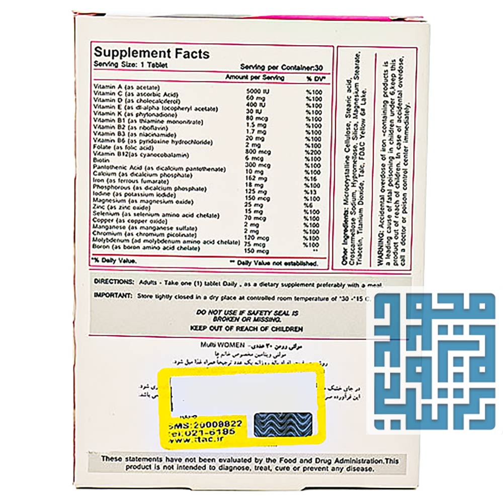 قرص مولتی وومن ریزمغذیهای ضروری را فراهم میکند که به تقویت سیستم ایمنی کمک میکند.