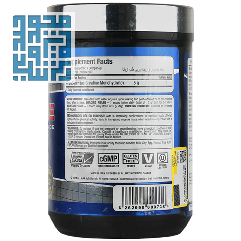 پودر کراتین مونوهیدرات آلمکس ۴۰۰ گرم بر پایه کراتین مونوهیدرات تولید میشود که خالصترین و پرکاربردترین شکل این مکمل در حوزه بدنسازی به شمار میرود. این ترکیب بهصورت میکرونیزه عرضه شده و انحلال و جذب مناسبی در بدن دارد. وظیفه اصلی آن افزایش ذخایر انرژی کوتاهمدت در عضلات است که منجر به افزایش قدرت و توان در تمرینات سنگین میشود. حضور این ترکیب در محصول باعث افزایش کارنوزین عضلات و ارتقای ظرفیت تمرینات شدید میگردد.