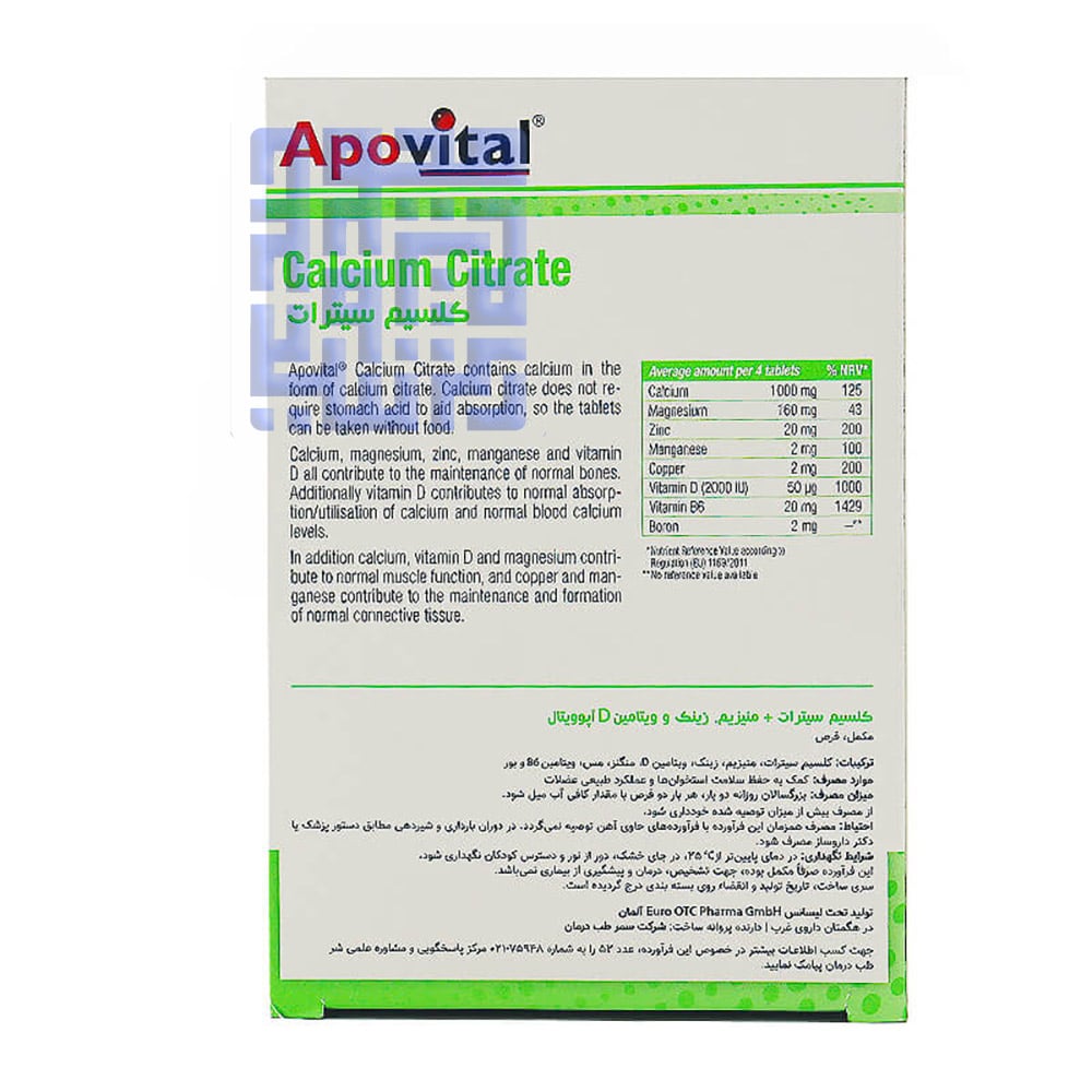 ترکیبات قرص کلسیم سیترات همراه با منیزیم زینک و ویتامین D آپوویتال