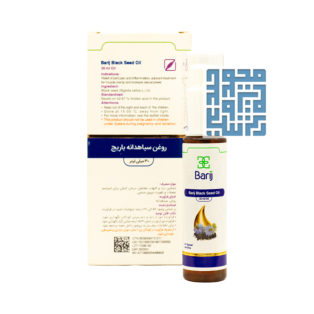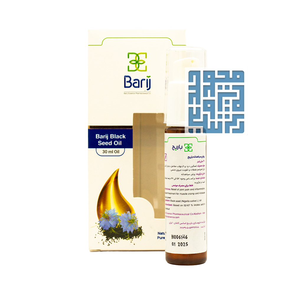 قطره روغن سیاهدانه باریج یک فرآورده گیاهی است که بر پایه اصول طب سنتی و با استفاده از مواد مؤثره گیاه سیاهدانه تولید شده است. این روغن شامل ترکیبات فعال و مفید زیادی است که تأثیرات ضد التهابی، آنتیاکسیدانی، و ضد باکتریایی دارند.