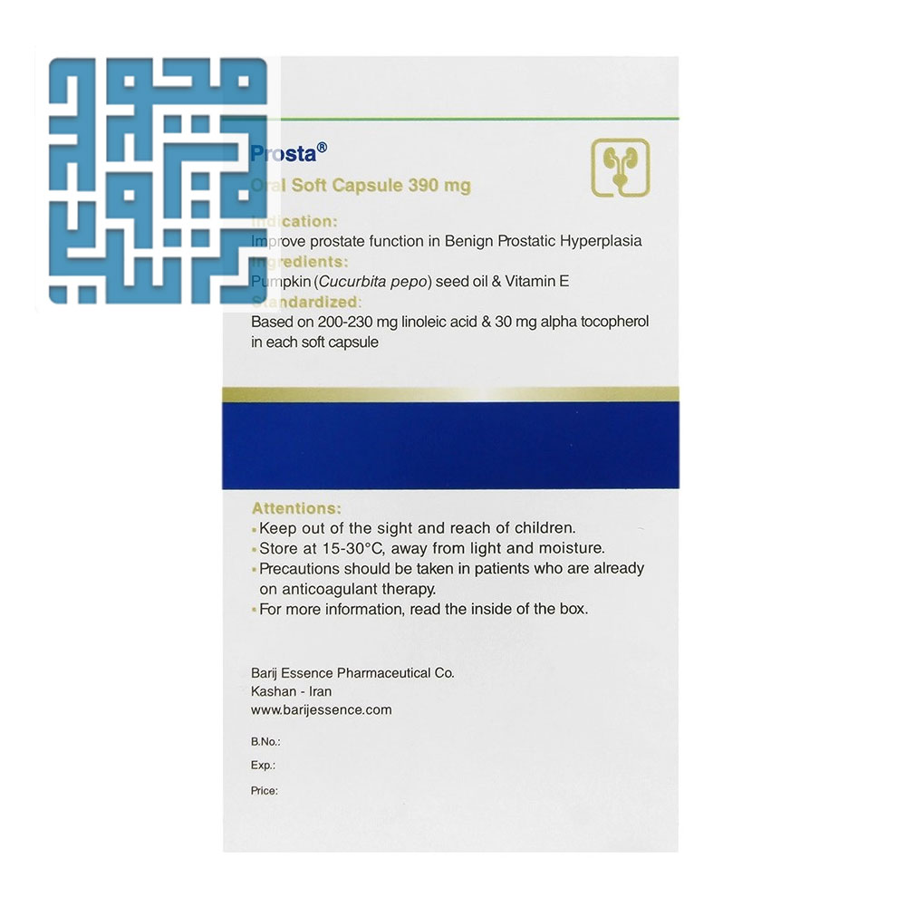 معرفی و بررسی کپسول پروستا باریج اسانس 390 میلی گرم ۶۰ عددی