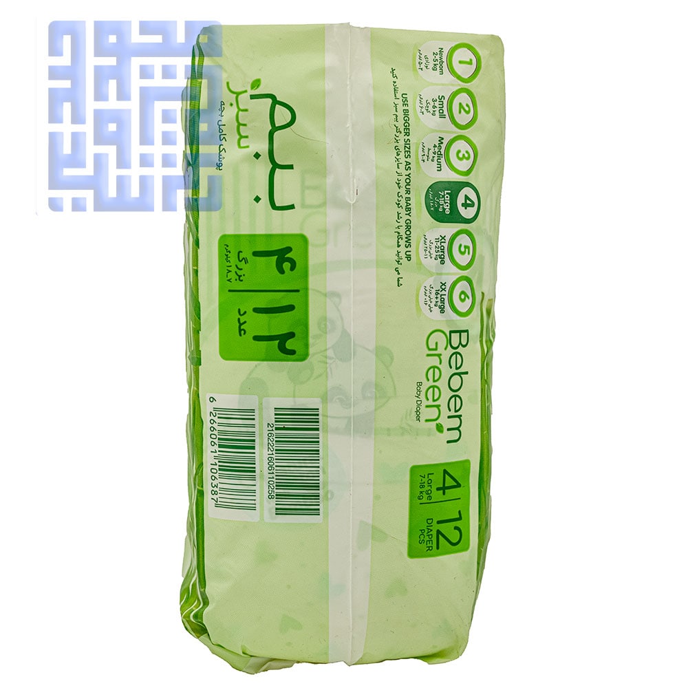 معرفی و بررسی پوشک ببم سبز سایز 4 نرمال بسته 12 عددی
