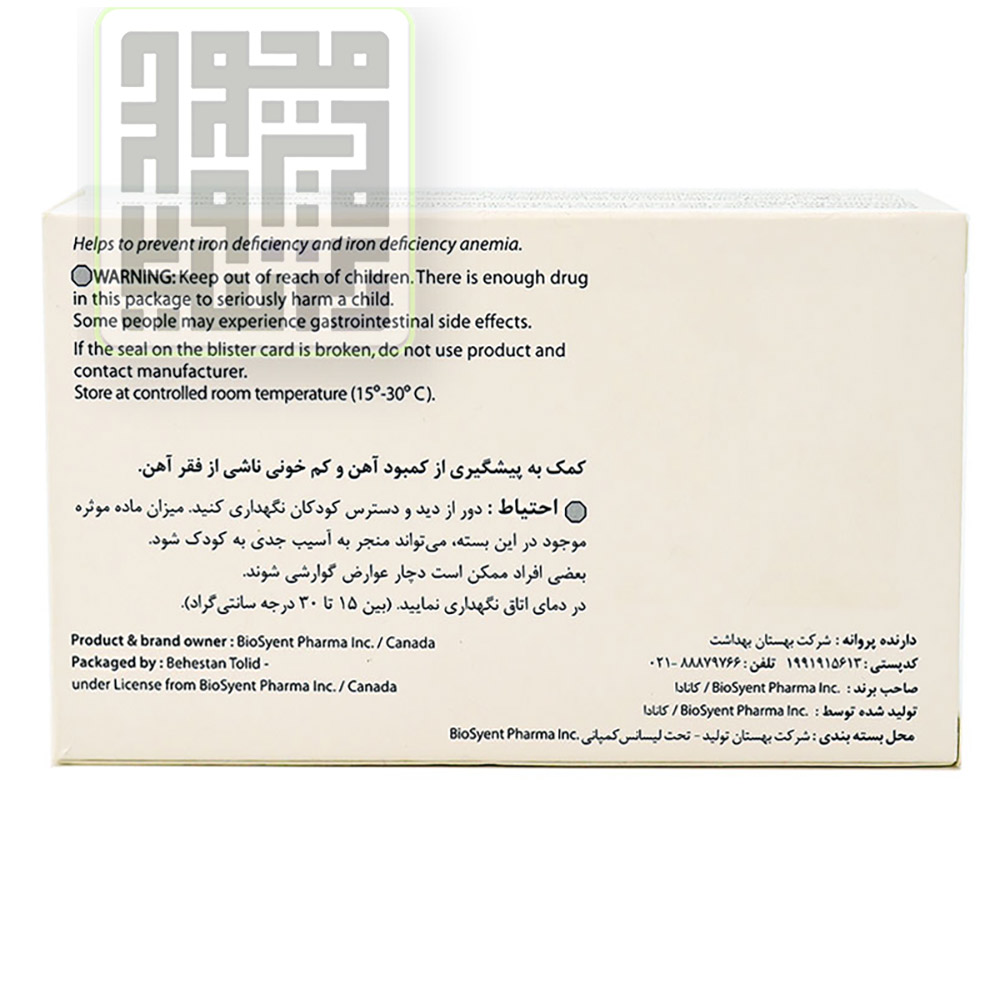 این مجموعه به‌گونه‌ای طراحی شده که آهن را به‌آرامی و به طور مؤثر در دستگاه گوارش آزاد می‌کند و خطر عوارض جانبی مانند یبوست، اسهال و حالت تهوع را کاهش می‌دهد که معمولاً با مکمل‌های آهن سنتی همراه است.