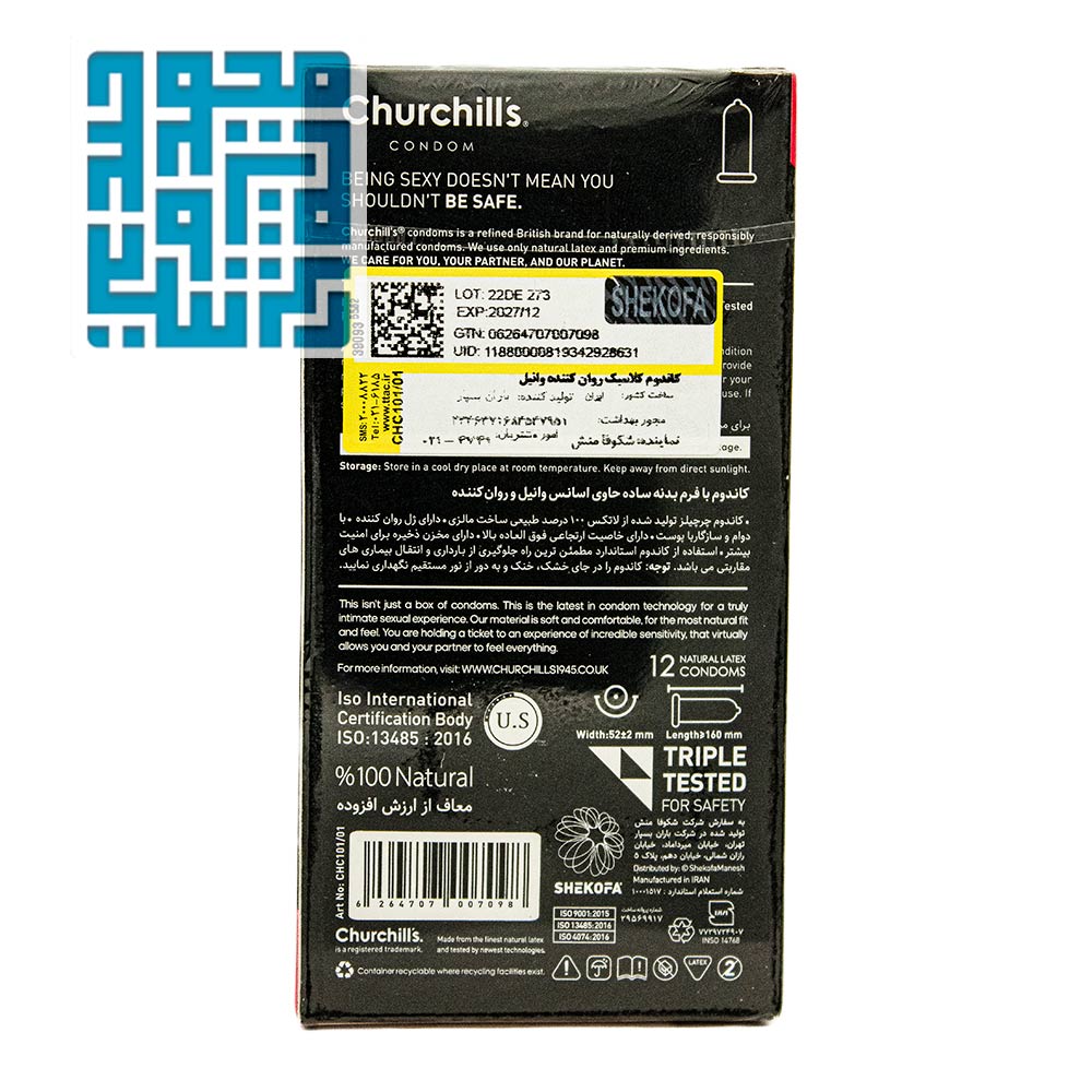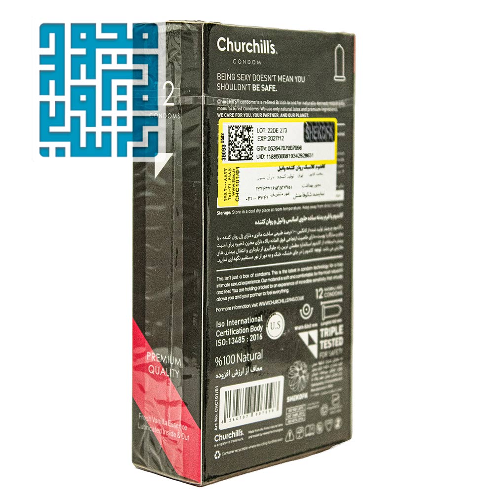 معرفی و بررسی کاندوم چرچیلز مدل Classic Natural روان کننده با روغن وانیل 12 تایی