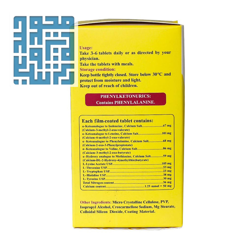 در هر قرص، ۳۶ میلیگرم نیتروژن قابل جذب وجود دارد که در مسیر تبدیل کتو اسیدها به اسیدهای آمینه مصرف میشود. این ویژگی به بدن اجازه میدهد تا با مصرف نیتروژن موجود، نیازهای پروتئینی خود را با فشار کمتر بر کلیهها تأمین کند.