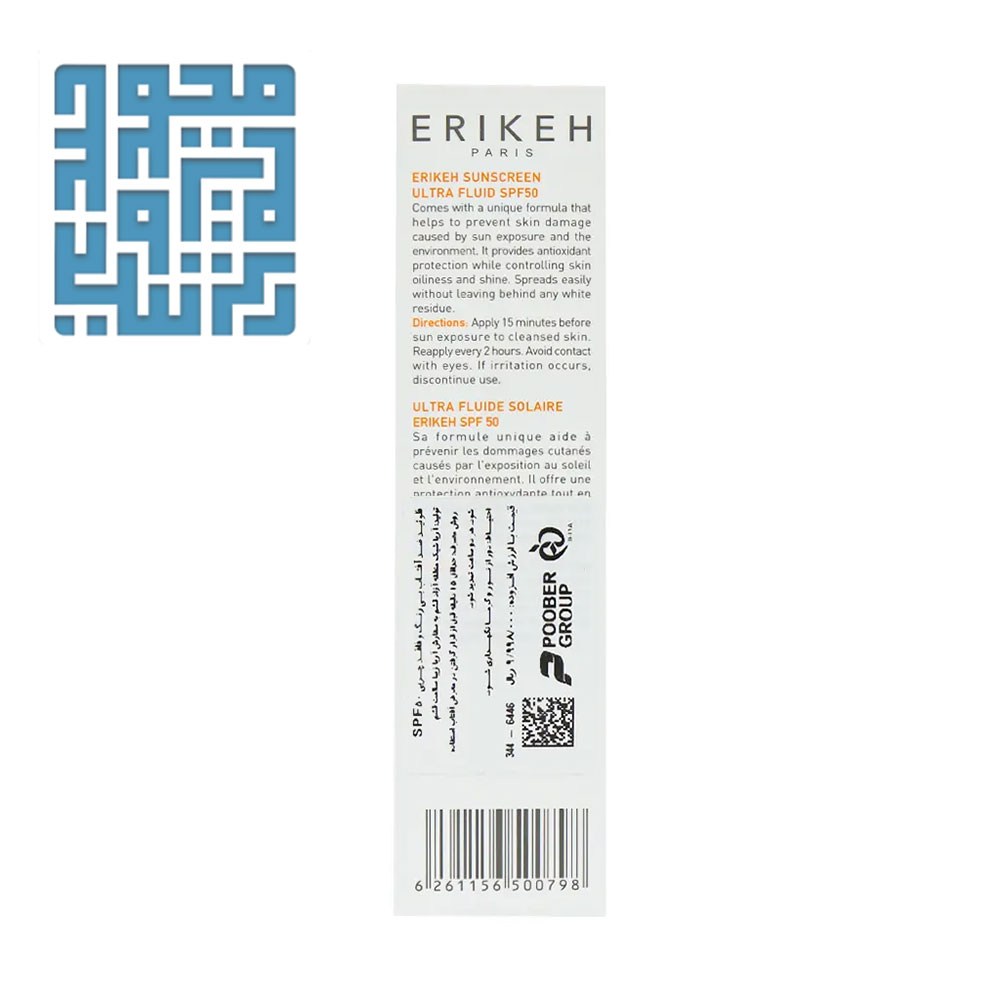 توضیحات کرم فلوئید ضد آفتاب SPF50 اریکه مناسب پوست چرب و مختلط 50 میلی لیتر