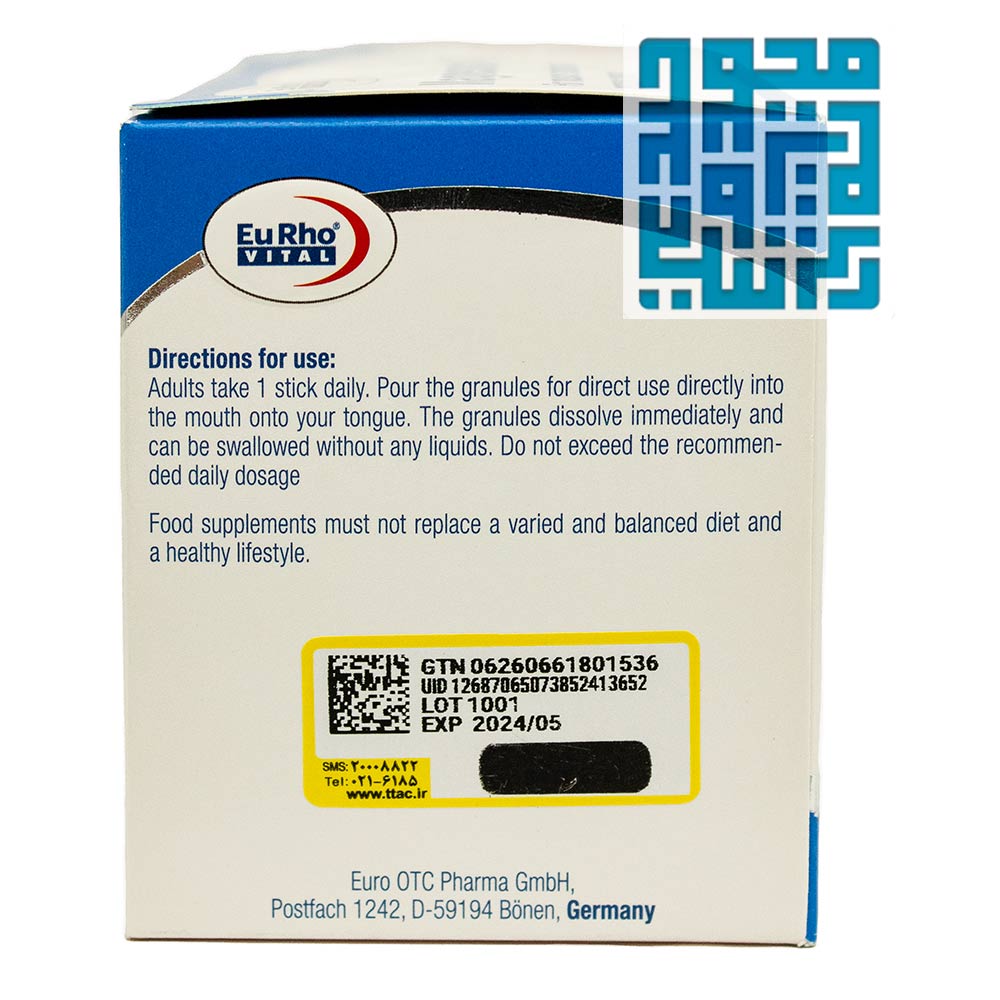 ویتامینهای ب کمپلکس: ساشه منیزیم ۴۰۰ یوروویتال را با مکمل ویتامین ب کمپلکس همزمان مصرف کنید تا از متابولیسم انرژی و عملکرد مغز حمایت کنید.