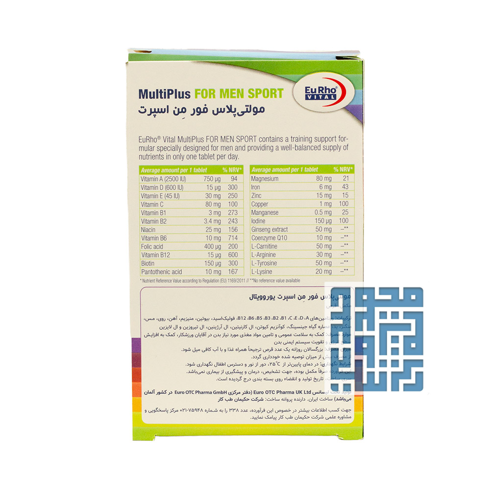 ترکیبات قرص مولتی پلاس فور من اسپرت یوروویتال