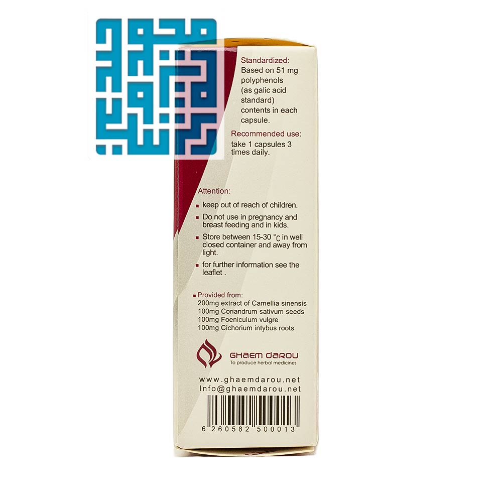 ترکیبات چای سبز میتواند هضم و جذب کربوهیدرات را کند کرده و به تنظیم سطح قند خون و کنترل اشتها کمک کند. به همین دلیل، کپسول گیاهی کپسول اسلیم مکس قائم دارو حاوی عصاره خشک برگ کاملیا سیننسیس یا همان چای سبز است. محتوای واقعی مواد فعال چای سبز در هر کپسول ممکن است متفاوت باشد.
