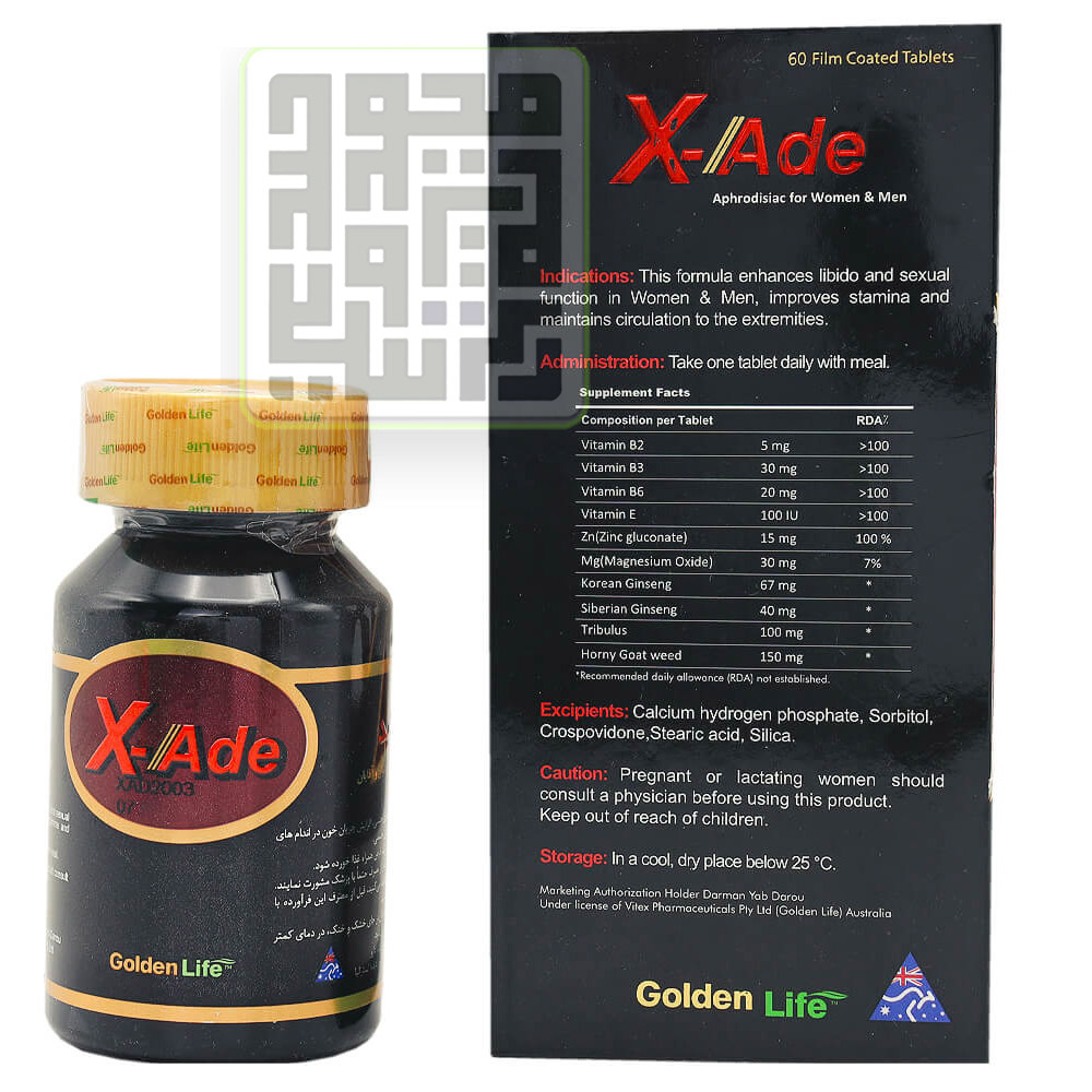 قرص ایکس اید تولید شرکت گلدن لایف بوده و در واقع یک دارو و مکمل جنسی برای بهبود گردش خون و افزایش انرژی بدن است. این مکمل حاوی انواع مواد معدنی و ویتامین گروه ب (B3-B6-B2) و ویتامین E است.